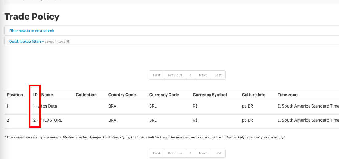 Código da Política Comercial dentro da VTEX. Essa informação pode ser obtida seguindo o seguinte caminho dentro da VTEX : Inicio -> Política Comercial. |
